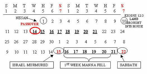 Now, just simply count backwards to the point where God said in Ex. 12:2, "this is beginning of months to you.” This puts the 1st day of the 1st month of the beginning of months and the New Moon on the 5th day of the week and the weekly Sabbath occurred 2 days after the the New Moon disproving again by the example that God Himself has set, NOT to use the 7th day after the New Moon as a method of determining the weekly Sabbath.